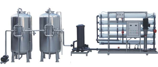 飲用純凈水制取裝置由預(yù)處理部分、反滲透系統(tǒng)及精處理等幾部分組成,采用單元組合結(jié)構(gòu)。目的是減少設(shè)備占地面積,便于運(yùn)輸及現(xiàn)場裝調(diào)試,具有占地小、安裝快、外觀漂亮、操作、方便等優(yōu)點(diǎn),設(shè)備部分均選用Ocr18Ni9(304)不銹鋼制作,管道低壓部分采用A.B.S工程塑料,高壓部分采用優(yōu)質(zhì)不銹鋼制作,主要部件(膜、泵、儀表等)均由國外著名專業(yè)廠商提供,整機(jī)性能達(dá)到國外同期水平! 目前約90%的純凈水廠采用的是反滲透純凈水設(shè)備。反滲透純水機(jī)的核心部件是反滲透膜,是利用反滲透之原理,運(yùn)用水壓,使水由較高濃度的一方滲透至較低濃度之一方,此時(shí)在較高濃度的所有細(xì)菌及不純雜物、可溶性固體物和對人體有害的有機(jī)物和無機(jī)物均不能滲入高精密的反滲透膜。反滲透膜是由美國太空總 署研發(fā),現(xiàn)已廣泛應(yīng)用于普通工業(yè)和民用領(lǐng)域,用高科技特殊材質(zhì)精制而成,膜孔小致萬分之一μs,換言之,大腸桿菌比此膜孔約大五千倍,因此除了水分子及少量溶于水中之微量離子能反滲透外,其余一切均全部被拒于膜外,瞬時(shí)即被高壓水流沖出,由廢水管道排除。而水分子在反滲透膜內(nèi)層再凝聚為H2O純水,貯存于無菌壓力水箱中,因此通過反滲透所生成的純凈水沒有一般濾水器有二度污染及成為細(xì)菌溫床之缺點(diǎn)。 反滲透水處理技術(shù)是當(dāng)今較為普及也較為成熟的純凈水生產(chǎn)技術(shù)。具有初中文化即可操作。